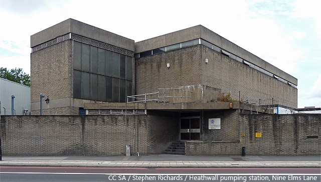 One of the few visible remains of the now very hidden river is hiding in plain sight among the glamorous new flats on Nine Elms Lane: the Heathwall Pumping Station, which has replaced the sluice gates and now lifts water from the Heathwall up to the level of the Thames sewer.