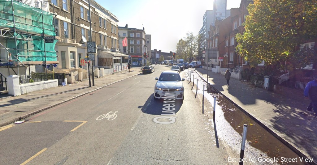 Plans are being developed to improve the cycle lane along the northern end of Queenstown Road. As the last chance for cycle commuters from much of south west London to safely cross the river before the nightmare of Vauxhall gyratory, Queenstown has long been a busy cycle route, which is reflected in the ‘cycle superhighway’ built a few years back and the temporary extra cycle infrastructure that has been installed during the pandemic.