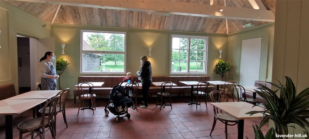 This was always a popular venue for dogs and children, and it is very well equipped with child seats, and the designers have wisely retained the muddy-shoe-friendly tiled floor. The premises has a full license and has a small selection of beers on tap. The ice cream kiosk was a reliable draw in the old cafe, and there remains an ice cream selection (but sadly only prepacked, rather than served in cones). Babyccinos remain available for 50p.