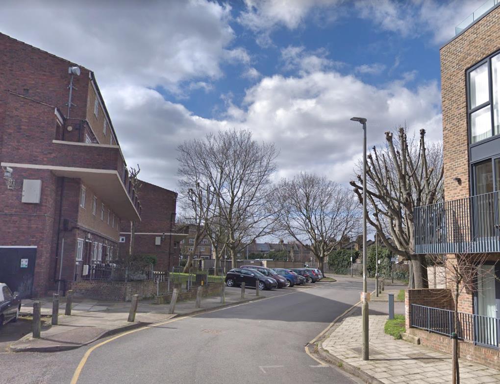 Here’s a ‘before and after’ of the entrance to the large area of garages and car parking at the back of the Gideon Road estate – the balcony visible on the right in the first photo is part of the privately owned set of flats and houses that were built a few years ago (Westmoreland Apartments).