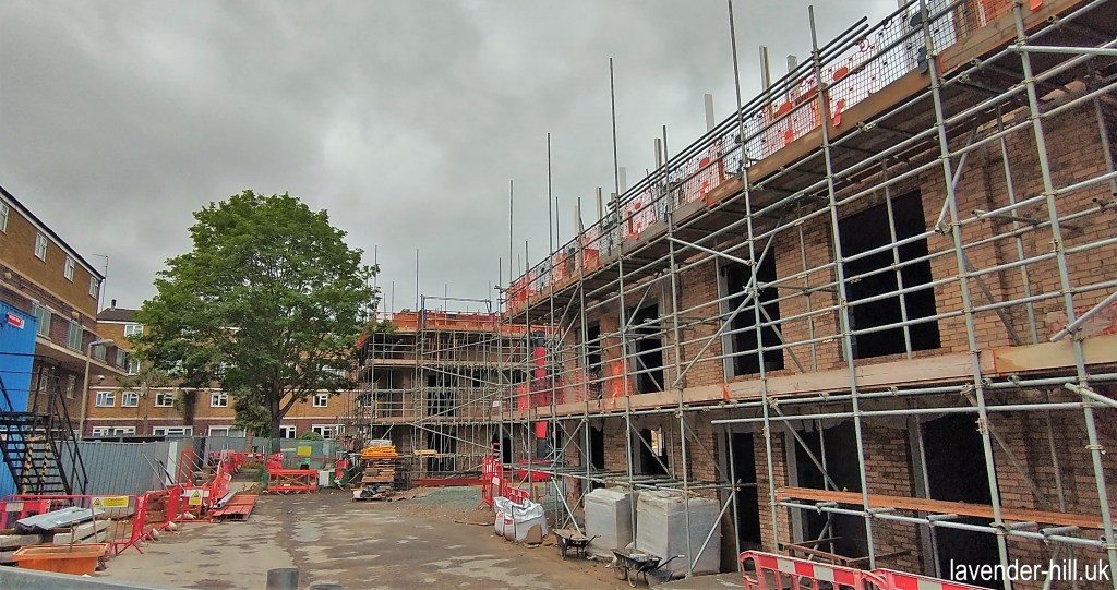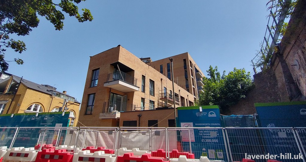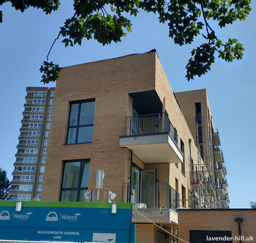 Two further buildings may also be built to ‘fill in the corners’ of on the courtyard flats on Tyneham Close, though there has been very little progress on these (the original planning permission has potentially already expired) and it’s unclear if these will actually get built. These aren’t the only ‘Winstanley replacement’ buildings; another large block is being built on Battersea High Street just after the railway bridge, and it’s almost finished. It’s an unusual plot – originally garages and workshops, and then considered for a private flats development that never really got off the ground – but then taken over as part of the Winstanley project.