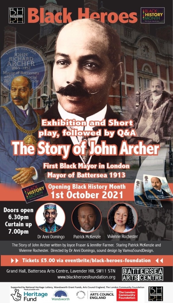 We’ve previously written in some detail about the impressive life story of John Archer – Mayor of Battersea back in 1013, Britain’s first Black mayor, and someone with an interesting and unusual life story. And this Friday sees the opening of Black History Month at the Battersea Arts Centre, where he was Mayor – which will be marked with an exhibition, a short play and Q&A on The Story of John Archer. Tickets, at £6, are available here.
