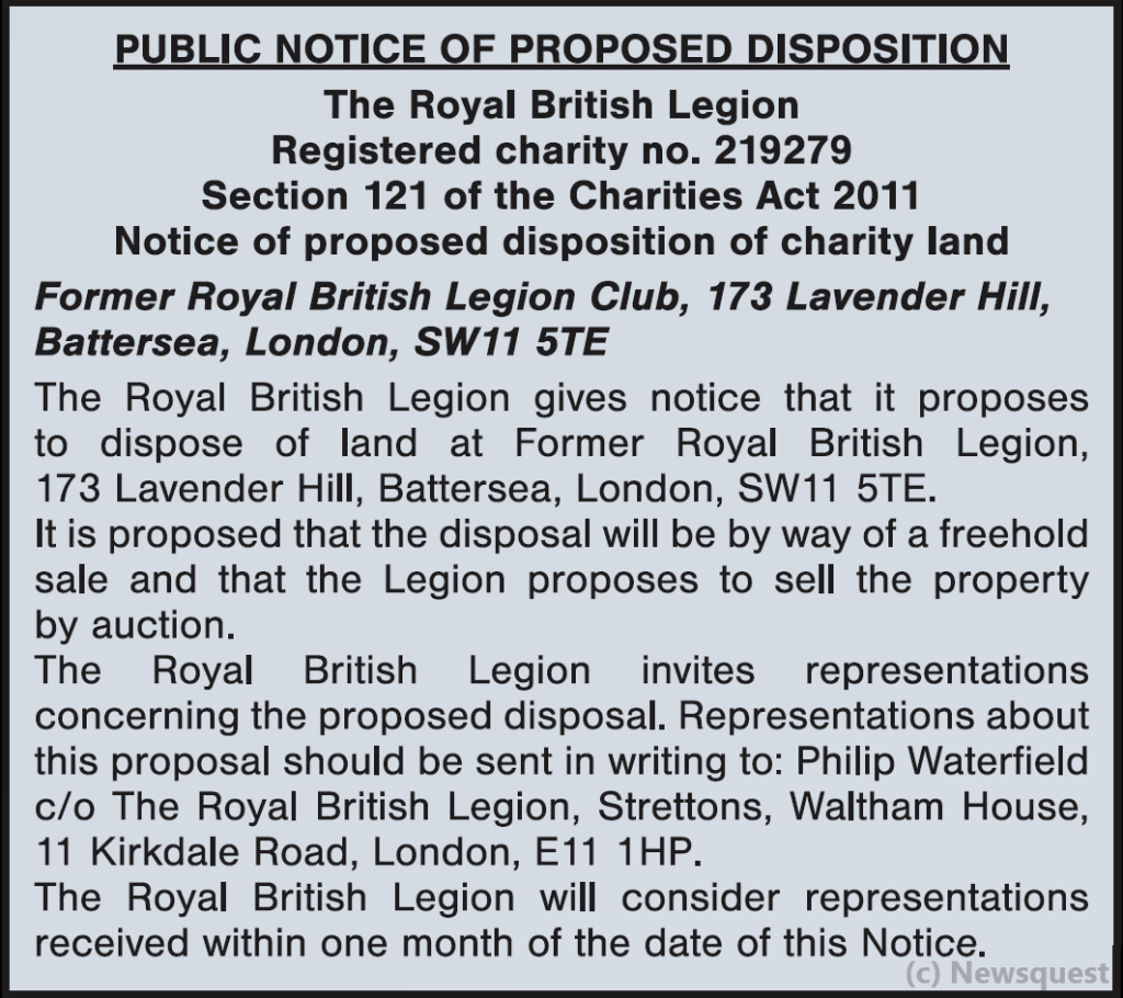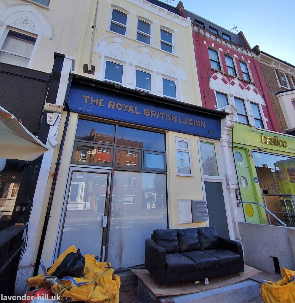The Royal British Legion at 173 Lavender Hill was a long established club, one of an extensive network of social clubs – the Legion Clubs – throughout the country. In its day, it was a popular one, known for Christmas tree sales to benefit the Legion on the forecourt.
