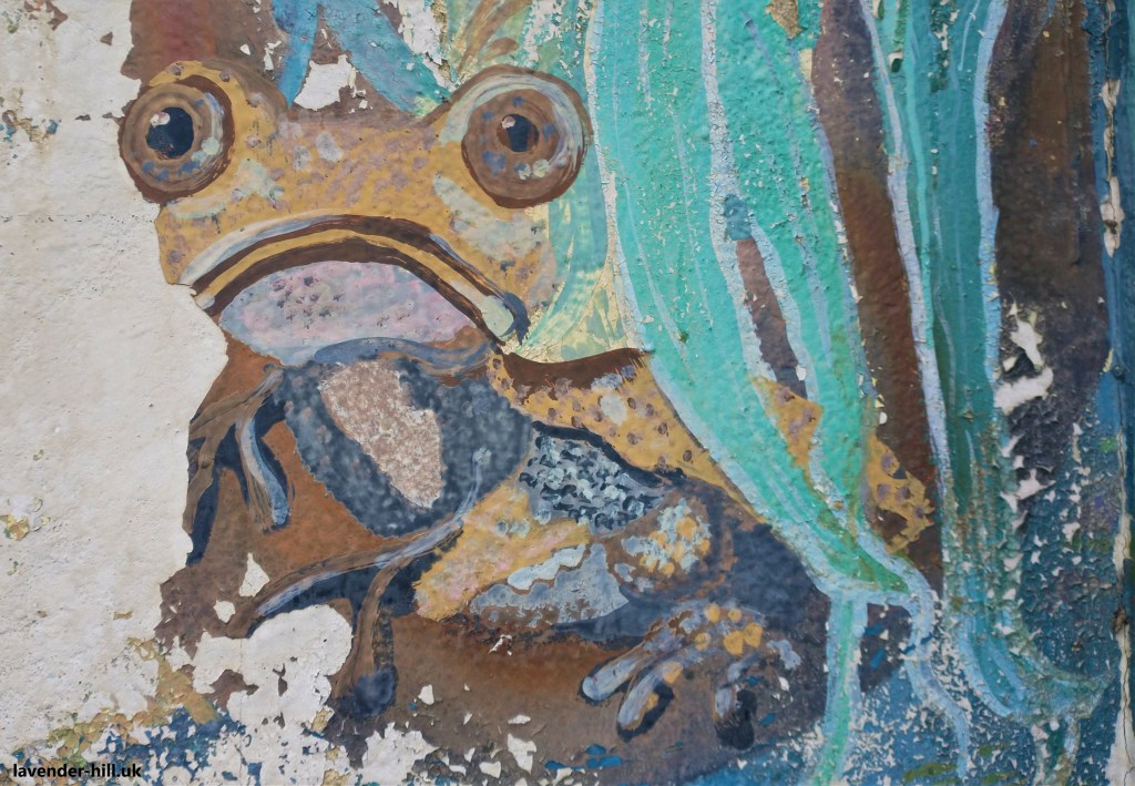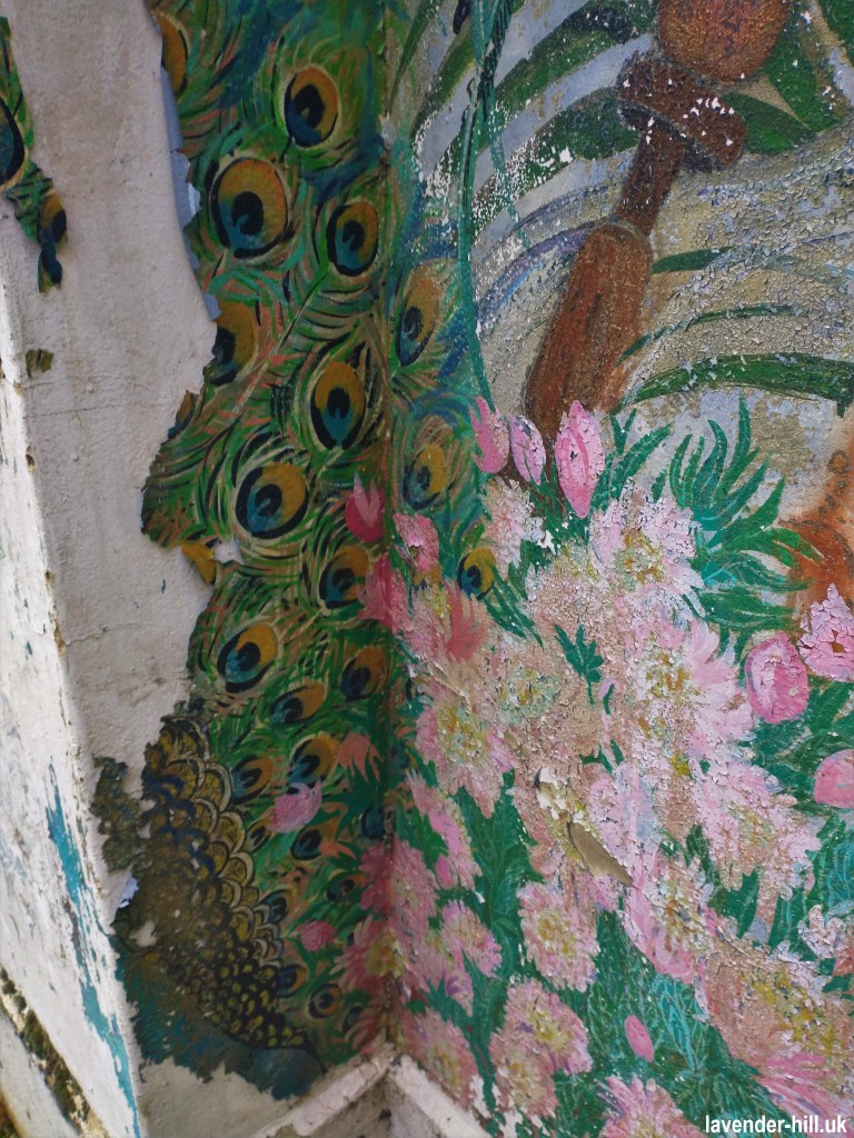 The mural took several months to paint, and when it was complete David Bellamy formally opened it. It’s never suffered graffiti or damage, but the flaking of the paint means its days may nevertheless be numbered – but if you look closely there’s still plenty to see including a peacock, a tree frog, a cockerel, a snake and a monkey.