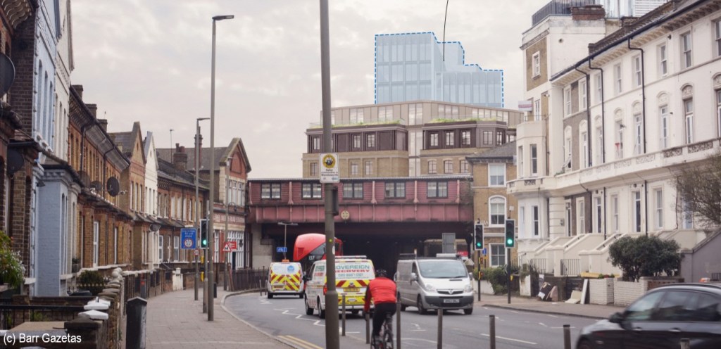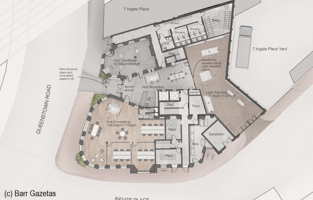 And that’s not all. In 2018 planning permission was approved for a 92,000 square foot ten-storey office building at 8-10 Ingate Place, pictured above – which will be built on what are currently a couple of warehouses, shown below.