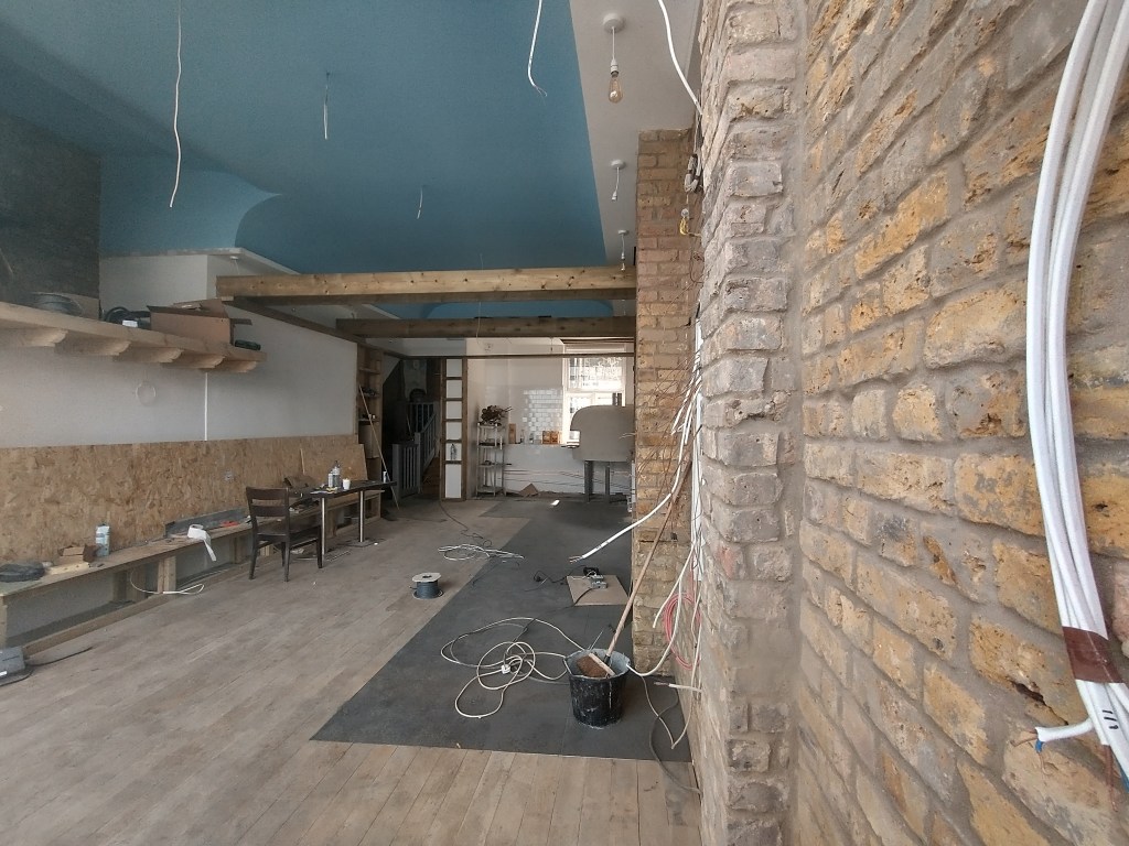 Works got going quite fast, with a clearout of the fire damaged contents, and building works to repair the back of the premises. As we understand it, things proved a bit more complicated than initially expected, and the premises needed rather more work than expected – so what had initially seemed like maybe a couple of months work stretched out in to more like five or six months, including quite significant repairs to the flooring beams, a complete rewire, and various other works.