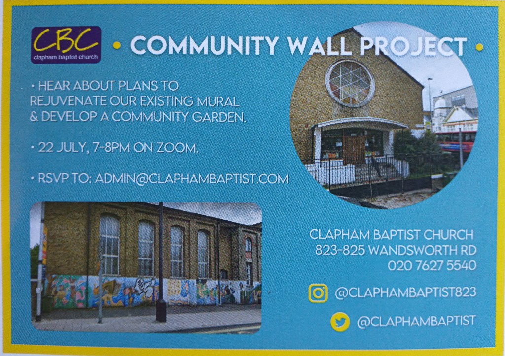 It’s easy to see how a bit more work on the existing mural could turn this in to the feature – improving the whole look of this stretch of pavement. Which is why we’re pleased to see the enthusiasm for this at Clapham Baptist Church.