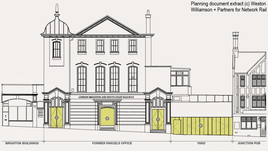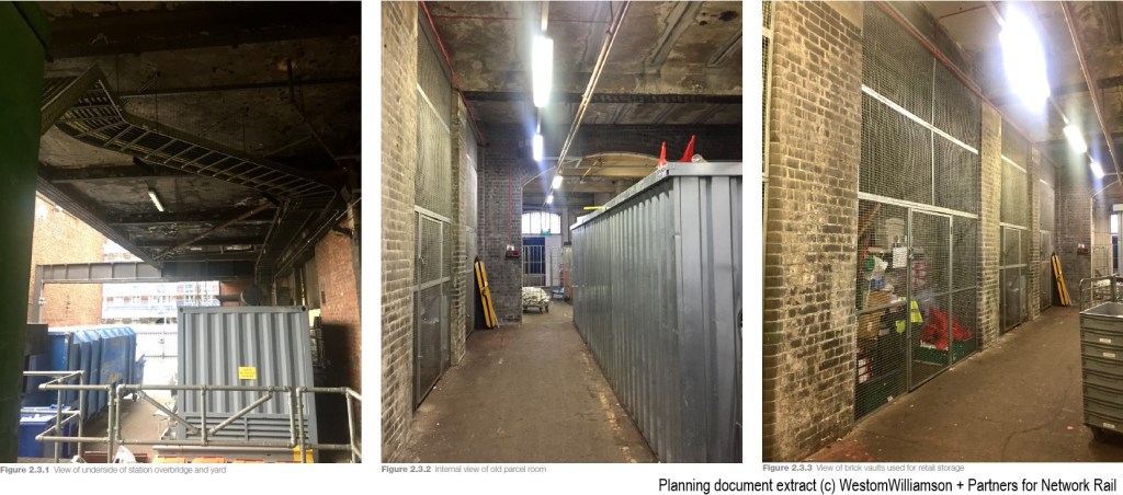 We broadly welcome this proposal and don’t expect it will be controversial in planning terms – it opens up a more-or-less wasted space to public use, with some fairly minor changes to a local heritage building, and by creating a new business right in the heart of the town centre it adds to the overall offer of the high street. From a heritage perspective the old ironwork will be largely unchanged, and while the current wooden doors will be lost, there are hopes that they can be used as a decorative wall panels somewhere inside the new venue. More generally – with government funding now only really being given to the North of England as part of the ‘Levelling up agenda‘, Network Rail needs to make the most of its property assets, and generate income to pay for the myriad series of small works that keep its stations running, and investing in underused spaces like this is a good way of doing it (the total cost of the works is described as ‘up to £2m’).