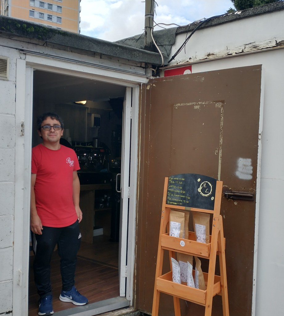 We’ve written about Culvert Road before. The rather dismal tunnel, and set of storage and industrial uses, just north of the Shaftesbury Estate. Few people know that hidden just north of the tunnel is a warren of small storage units, let to a variety of tiny businesses – which is currently facing an uncertain future with plans to redevelop it to a more modern set of business premises. Even fewer people have ventured inside. But an interesting new business has set up on one of the units right next to the entrance: if you go through the somewhat uninviting looking gates and immediately turn sharp left, you’ll find AL Coffee Roasters.