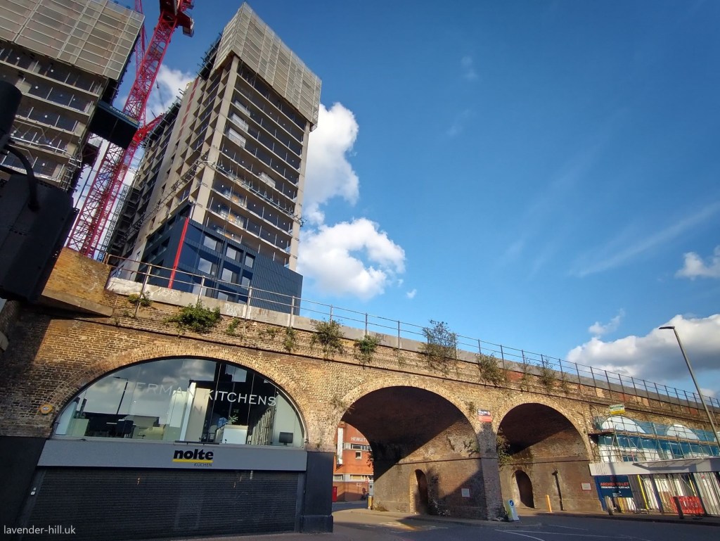 The image above shows these two buildings from Nine Elms Lane, and the one below shows these two buildings on the left, with the planned Workspace building not shown but set to be built just behind the brick wall pictured on the right. It may take time for these buildings to take shape – but the future for this little-known corner of Battersea looks quite high-rise! This spot between the railway lines is a location where it makes sense to build upwards, and it’s good to see that we’re not losing the space for the businesses that create local jobs and opportunities. As ever, we’ll keep you posted on developments.