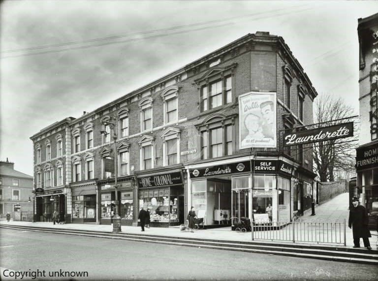 It’s not all over for local launderettes. We still have the Lavender Launderette a few doors down at 13 Lavender Hill – pictured above at some point in the early 1960s (when it had a rather impressive sign spanning Wix’s lane, and when there was an empty ‘space ‘bombsite’ space where Caffe Nero now sits that lasted for decades until it was rebuilt in a joint project with the similar-looking building opposite that houses Sainsbury’s). We also have Lily’s Launderette nearer Clapham Junction at 229 Lavender Hill – both of which are still going strong.
