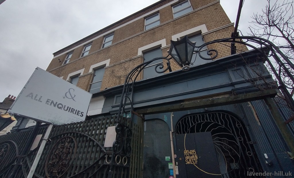 We’ve written before in some detail about the abandoned cluster of buildings at the junction of Wandsworth Road and North Street in Clapham. Once home to the Artesian Well & Lost Society, and before that to the Cafe des Artistes, the last few years have seen them become particularly run down: the owner gave up running them as bars after becoming embroiled in a series of license disputes, and they then changed hands a few times while being intermittently occupied by squatters and Property Guardians.
