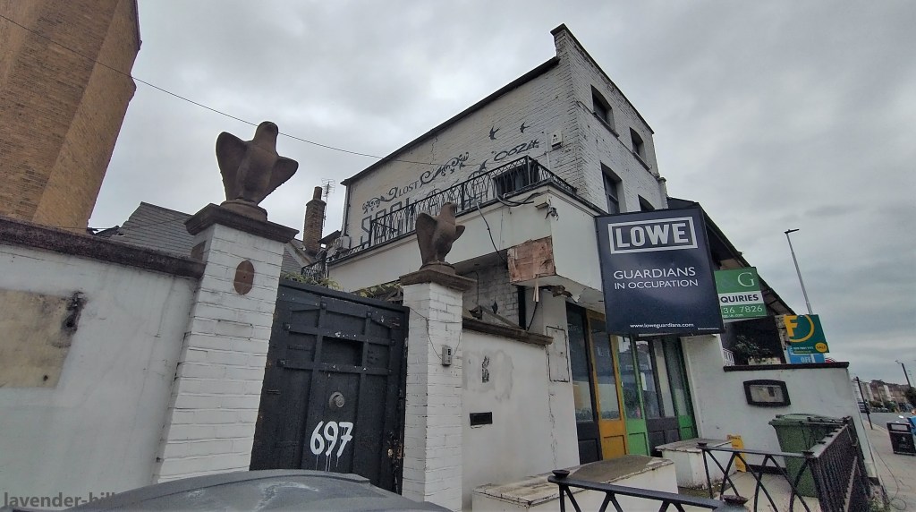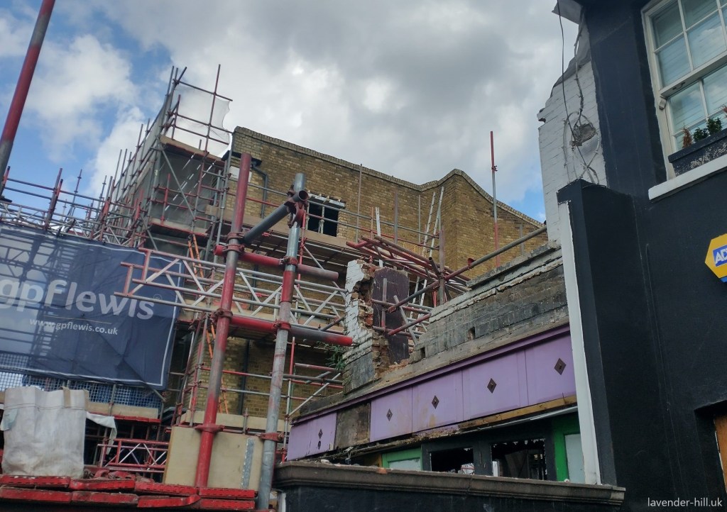 …leaving nothing but a large gap in the terrace. It’s a shame to lose this particularly old building with a long history, maybe going all the way back to the 16th century when it was a barn on the Clapham Manor estate and would have been on an isolated hilltop. After stints as a as a motorcycle showroom and garage, a tyre depot and an antique emporium “called Ageless” – whiel also being said to be haunted by the ghost of Rose Devereaux, a flower seller who died in tragic circumstances at the turn of the century – it became the Tearoom des Artistes in 1982, and was for many years quite a unique venue. For those of us who never saw it in its prime, Bill Hicks’ recollections as well as the article comemnts are well worth a read –