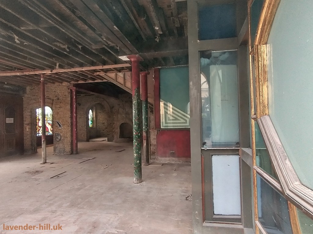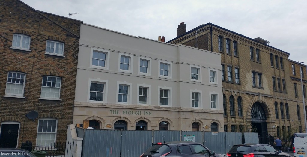 Both were ultimately bought local developer Marston Properties in 2016, a local firm responsible for quite a few developments in the Lavender Hill area. Marston knew this area well: they just happened to already own the Plough Brewery across the road (which they have converted to an office complex). The year before, in 2015, Marston had also bought the former Plough Inn next door to it – which had been trading as Mist on Rocks, under the same licensee as the Artesian Well and Lost Society. With these purchases, Marston found itself in the interesting and unusual position of owning four neighbouring buildings – three of them former licenses premises – so had quite an opportunity to reshape this bit of town. They got going on a comprehensive refit of the Mist on Rocks building at the very end of 2020, and have recently finished work – creating two flats on the upper levels, facilities for the business centre next door on the lower levels, and the ground floor currently up to let as a cafe that will be open to the public as well as to those working on the brewery office complex next door. It’s looking pretty decent – a nice touch is that the original windows and the pub tiling have been carefully restored.