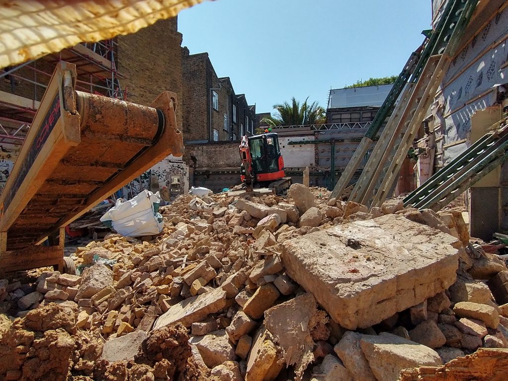 The building works kept the old building in place for longer than we expected, as substantial amounts of material were extracted from the old building and extensive digging took place. We did wonder at one stage if the building – or parts of it – had maybe had a partial eleventh-hour reprieve. But then the whole lot rapidly disappeared…