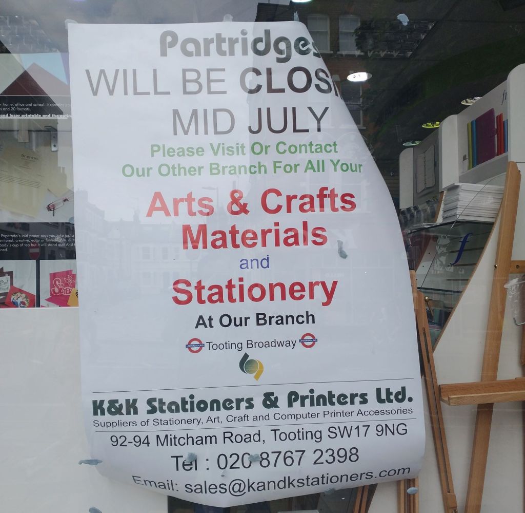 But for now, we have a few more days of having a properly stocked local stationery shop before we’re left with the small selection in Rymans, the core range in Asda, or the option of online delivery or heading out to options much further afield like Hobbycraft in Summerstown.