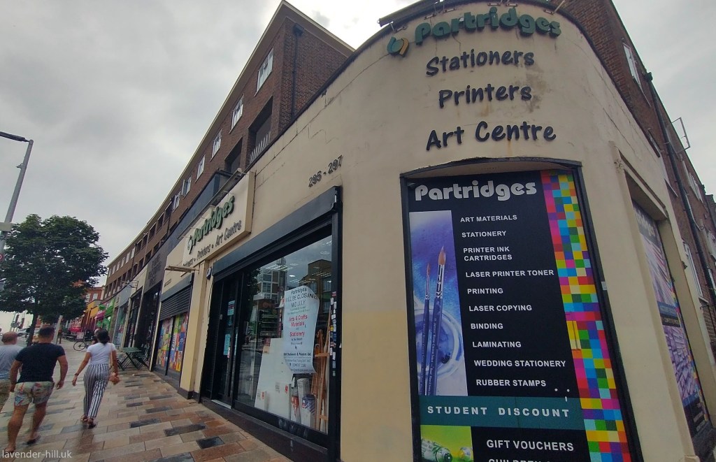 Partridges’ art and stationery supplies shop is one of Lavender Hill’s longest standing shops – if not the longest standing. They have been here for sixty years – with the current owner trading for 25 years. Generations of every kind of art paint, pens of all description, craft tools, papers and card of every shade, files and folders – but also polystyrene shapes, wooden figures and shapes, beads and stickers, wool and sewing supplies, glues, plasticines and clays, you name it – this is the one place that is pretty much guaranteed to stock it, no matter how obscure. But that’s all about to come to an end, as they close for good in the middle of July.