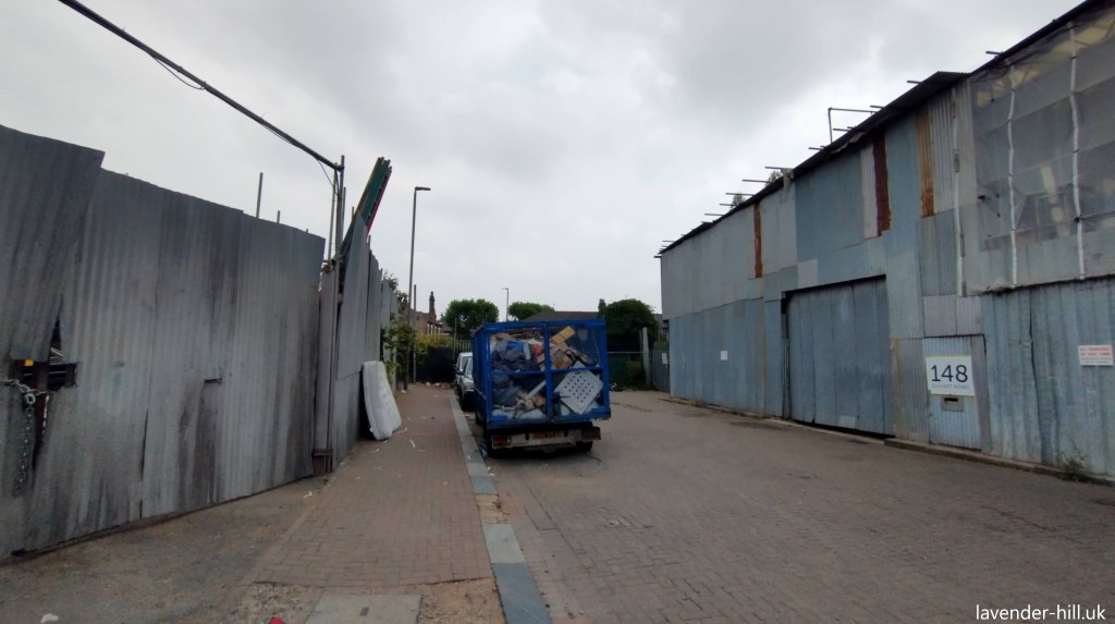 There are other, much larger, railway arches to the east – but as the arch plan above shows, these arches only go about a quarter of the way under the railway, with the rest just being a huge earth embankment, so there’s no hope of converting one of them to a better or secondary access tunnel. And somewhat unusually there are no other arches at all that could give access to the large Parkfield industrial estate! Not a single one, it is surrounded on all sides by embankments and live railway lines at ground level – which probably explains why they are serving a whole series of large industrial units and dark kitchens through one woefully narrow tunnel. As an aside – the next two photos show the arch next to the tunnel in use in the film A Fish Called Wanda – for more on the extensive film use of this spot see our previous article.