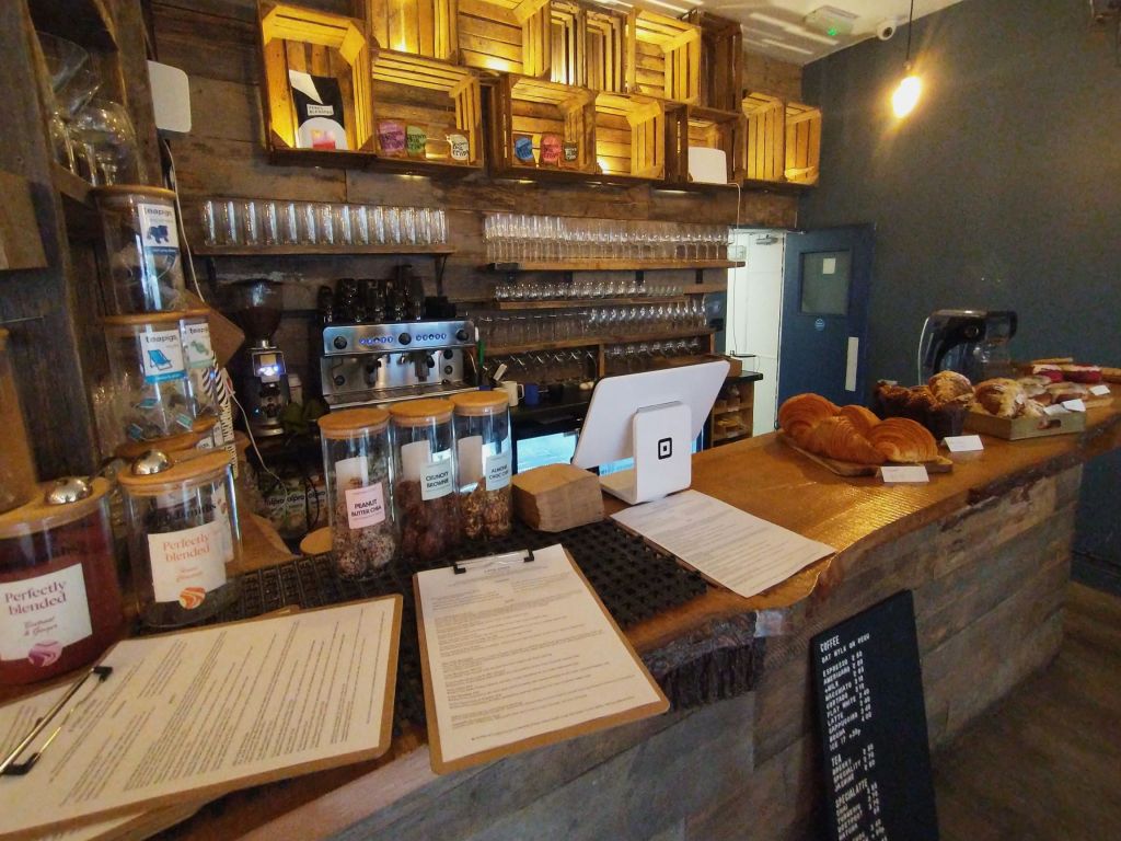Plenty of tables and chairs are already in place to get things going, but in the near future we can expect to see more of a mix of seating including sofas, and there should be WiFi, a bit of music, and all the things you’d expect in a neighbourhood coffee shop. It’s such a soft launch that there’s not actually a sign up on the outside either yet (the rain and cold weather delayed work to repaint the exterior), but that should be up in the next few days. The outside terrace will also be refurbished in time for the spring.