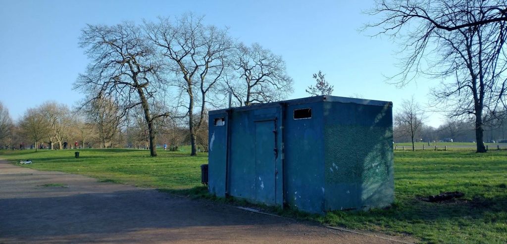 They’ve been on the brink of collapse for years! There are cracks around the walls at the back, brambles have taken over the access paths, someone stole most of the roof, and the whole building has a slight lean to it. The inside’s not much better – for those who’re confident enough to venture past the ‘dangerous structure’ signs scattered around the building it’s been a sort of store for groundskeeper junk – bent goalposts, burst footballs, abandoned shopping trollies. The old toilet building on Clapham Common westside – in the corner of the forest, nearest to Clapham Junction – closed decades ago, due to the usual combination of vandalism and dwindling maintenance budgets. The fact that this building was the very epicentre of one of the most notorious cottaging spots in the country, at a time when our LGBT community was a lot more in the shadows, probably played in to the decision too.