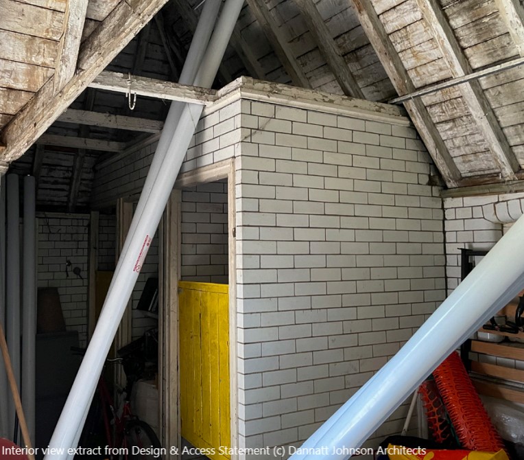 Lambeth tried again the next year, this time describing the portakabins as ‘temporary’, but the second application was later withdrawn (presumably as they got wind that another refusal was on the way) and never got to the final decision stage. And at that point Lambeth lost patience with the project and pretty much closed the book on the old building, leaving it to an uncertain future. Not much happened for a long time, though it’s at some point after this that a fair bit of the tiled roof mysteriously went missing, and was covered with a plastic tarpaulin.
