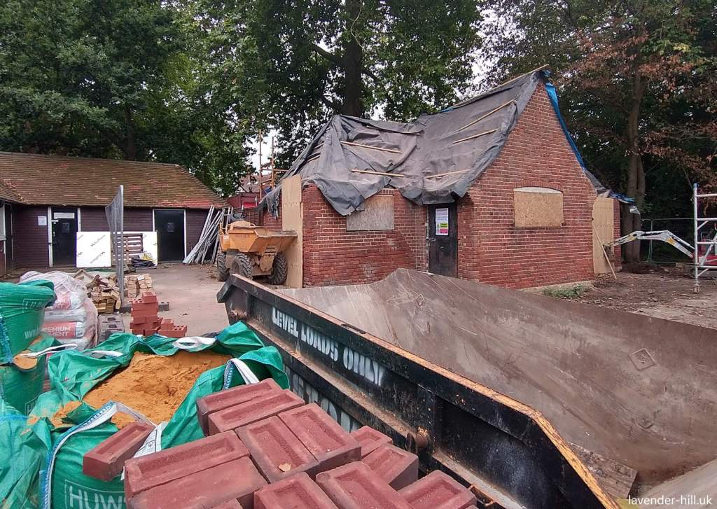 It’s scrubbing up really well, as our photos of the work in progress show. Just think – that this could by now have been a set of green steel sheds! The similar ones by the old gravel pitches below show what we’ve luckily avoided.