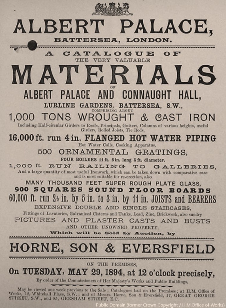 So the grand palace, installed just a few years earlier, slowly decayed and became a ruin. Many of the once spectacular windows were broken and pigeons started to take over the interior. It was finally demolished five years later, with the entire contents of the building put up for auction in 1894 including wrought and cast iron, piping, ornamental gratings, boilers, toilets, bricks, plate glass, joists and beams, staircases, pictures and plaster casts. The grand organ, one of the largest in the world with its 4000 pipes, survived and eventually ended up in Fort Augustus Abbey in Scotland, where – having been electrified and reduced in scale to fit a more normal sized building – it’s still working.