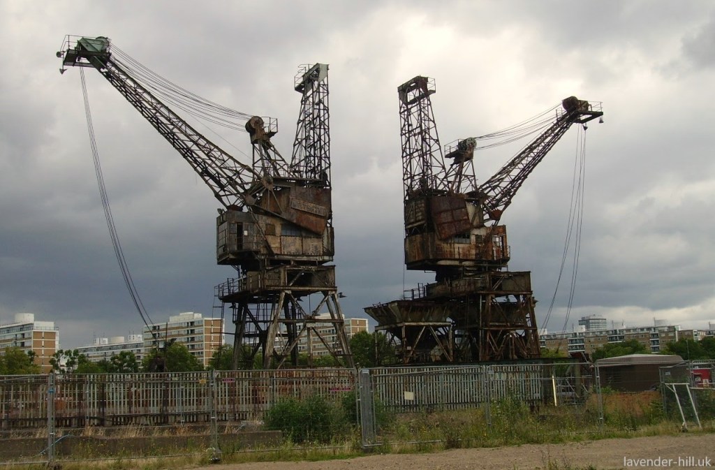 Another photo of the cranes emerged a few months later, in August last year, suggesting the cranes were still there – there’s not so much clue as to the location other than there being a tree in the background (so clearly not Tilbury docks) – it may also be Mucking Wharf Landfill although there’s not a lot there either in the way of trees. Condition of the cranes again leaving rather a lot to be desired.