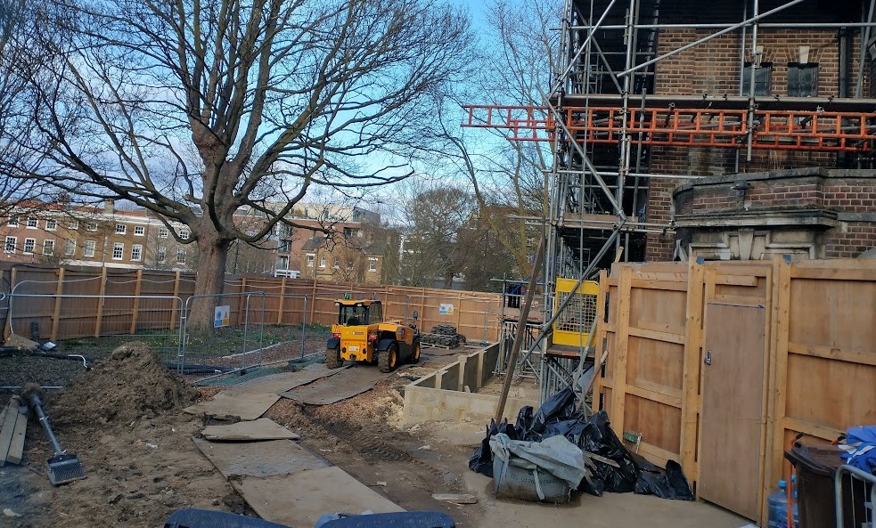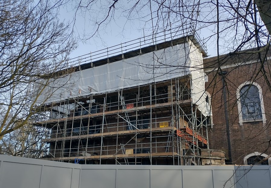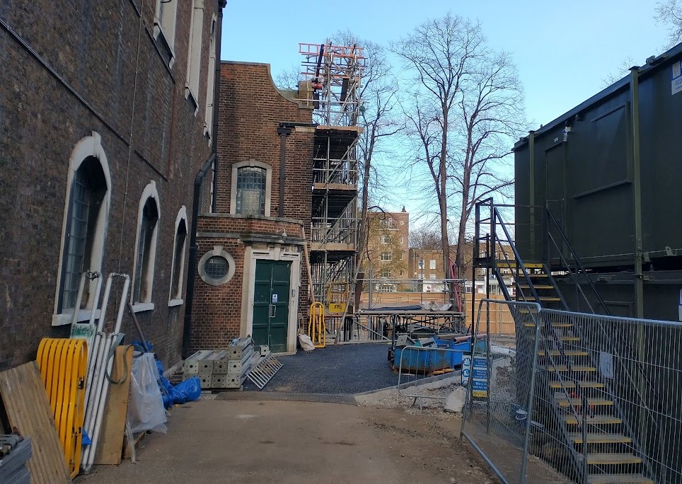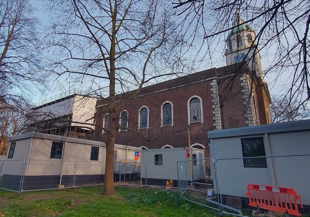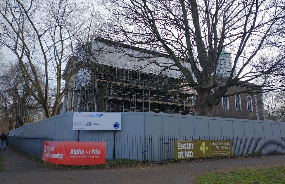 It’s rare to see a church turn in to a building site – especially one as prominent as the Holy Trinity, which is surrounded by part of Clapham Common. We reported back in 2021 that plans were afoot to extend the building and modernise its facilities, and works have now started – with half the church surrounded by construction hoardings.