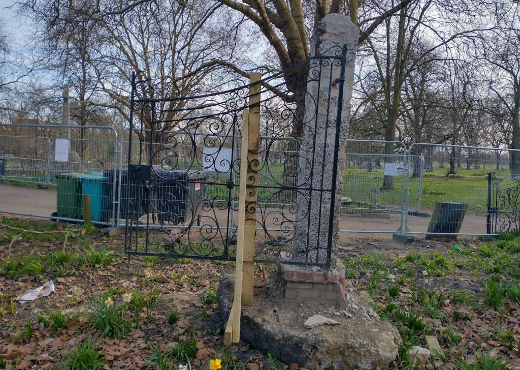 One slightly intruguing sight on the building site is one of the old gates, which has been removed to widen the entrance route and allow larger construction vehicles in to the site. The whole structure including its foundation has bene lifted up and moved out of the way, supported by a wooden prop. The gate post has been stripped down at the same time to reveal the rough concrete core.