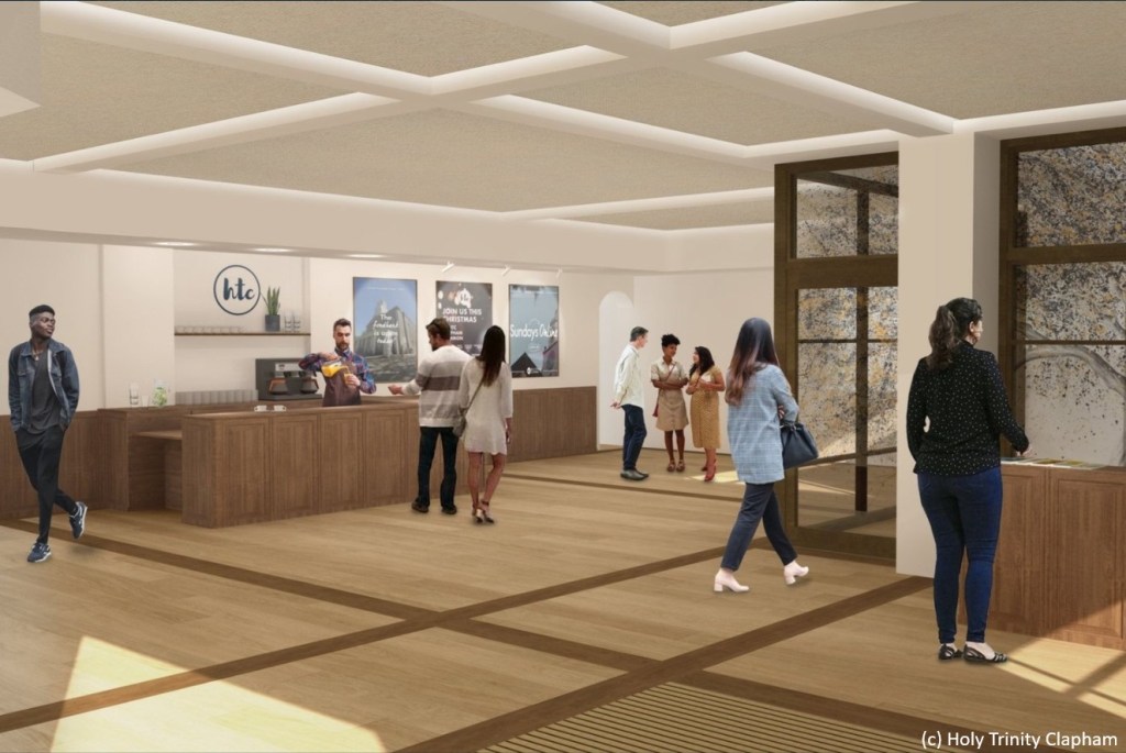 The project is essentially a set of extensions and changes to make the church a more flexible building, and open it up to wider set of uses. The north vestry will be extended to add four new meeting rooms spread over two floors, and the former south chapel will also be extended to include a disabled accessible entrance, ‘meet and greet’ space including tea and coffee facilities (pictured below), new fully accessible toilets, a new kitchen facility, and a lift and stairs down to the basement (a well as new lightwells to bring daylight to the basement).