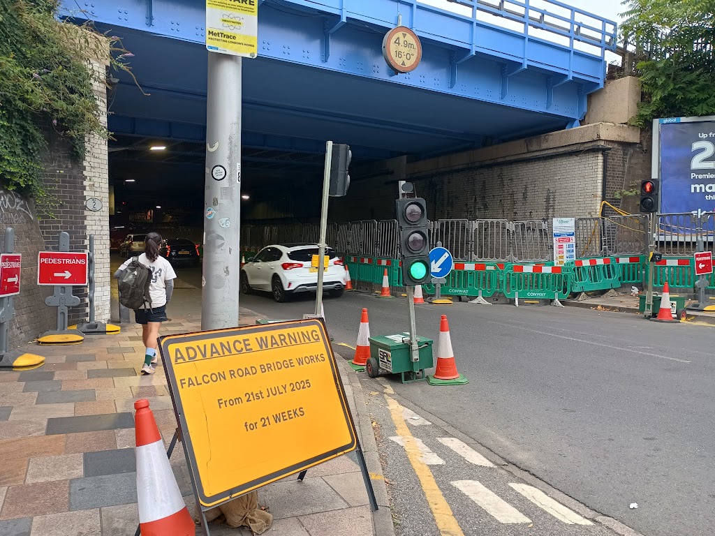 Lavender-hill.uk is a community site covering retail, planning and development and local business issues, and sometimes posts like this one on transport and the environment – all centered on the Lavender Hill area in Battersea. We sometimes also post more detailed articles on local history. You may want to see a previous article on the bridge at Clapham Junction Insider, back in 2019 –What can we do about Falcon Road’s horrible railway bridge?. If you found this interesting feel free to sign up to receive new posts by email (for free, unsubscribe anytime). If you want to comment on the planning application on the details of the works, it still seems to be at least theoretically possible even though things have got going – search for case 2025/2192 at wandsworth.gov.uk/planning (it technically was open for comments in July, we’re not sure why there has yet to be any decision).