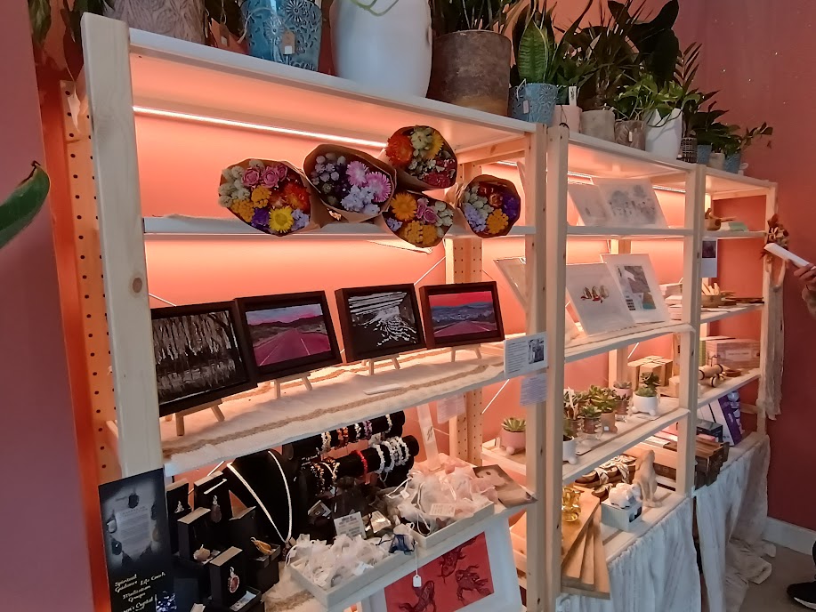 The Shelf showcases small independent businesses and individuals, with a range of art, ceramics, homeware, beauty and skincare, and jewellery and accessories, as well as plants, postcards and cards, and candles.