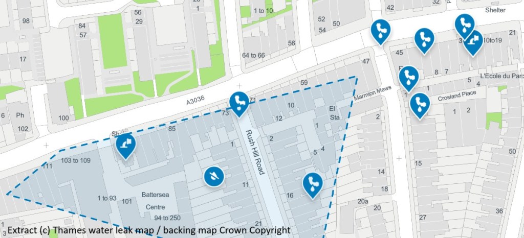 It works – things do, eventually, get fixed. Though if you have a smaller and less dramatic leak, you’d better not be in a hurry as the repair times are stretching from a few weeks, to many months. The oldest ‘live’ leak in Thames Water’s database on Lavender Hill was apparently first reported on 7th March 2025 and is still waiting to be investigated, despite Thames Water noting on that report that Our technicians aim to be there within the next 24 hours (It may be longer if we’re really busy. In the name of journalistic research we’ve just been to have a look – and can confirm it’s still leaking.